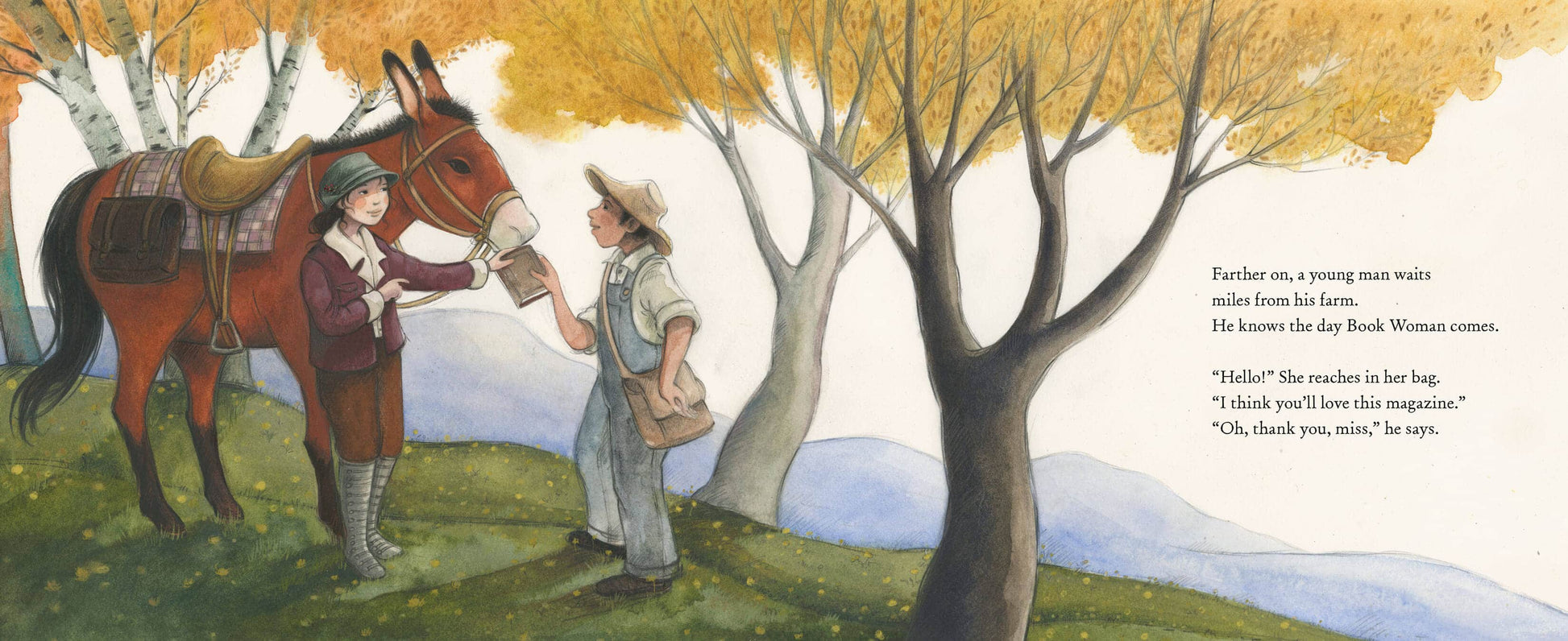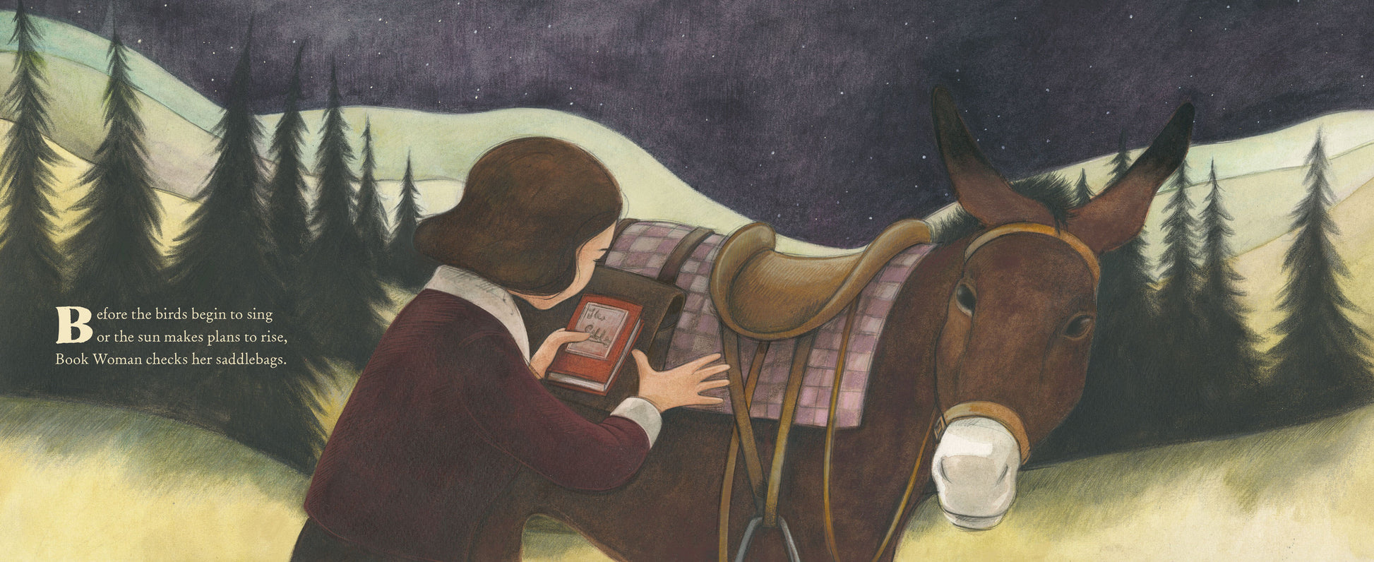 Before the birds begin to sing or the sun makes plans to rise, Book Woman mounts her surefooted mule to traverse the rugged Appalachian terrain and deliver books to isolated mountain readers.